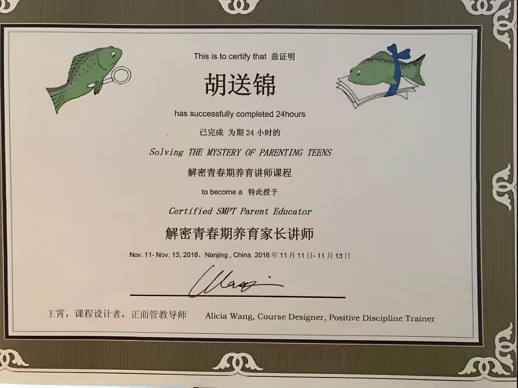 正面管教家长/学校双讲师/导师候选 国际认证鼓励咨询师 解密青春期养育讲师 SEL儿童社会情感培训师 瑞安市教育局聘任的家庭教育讲师