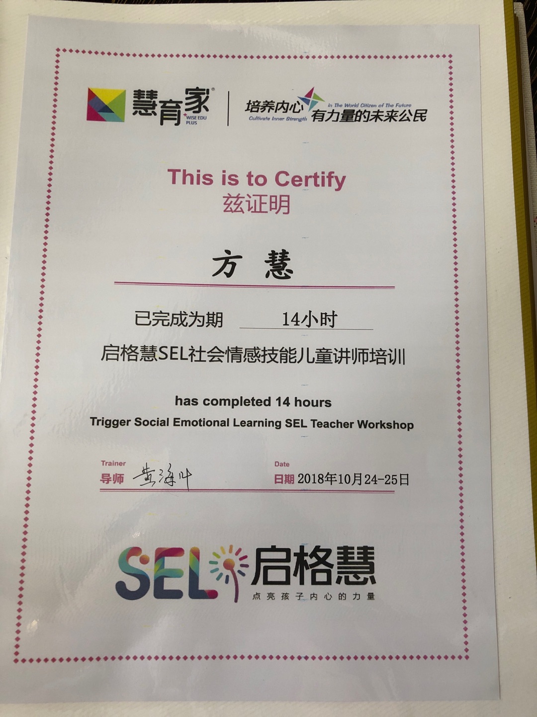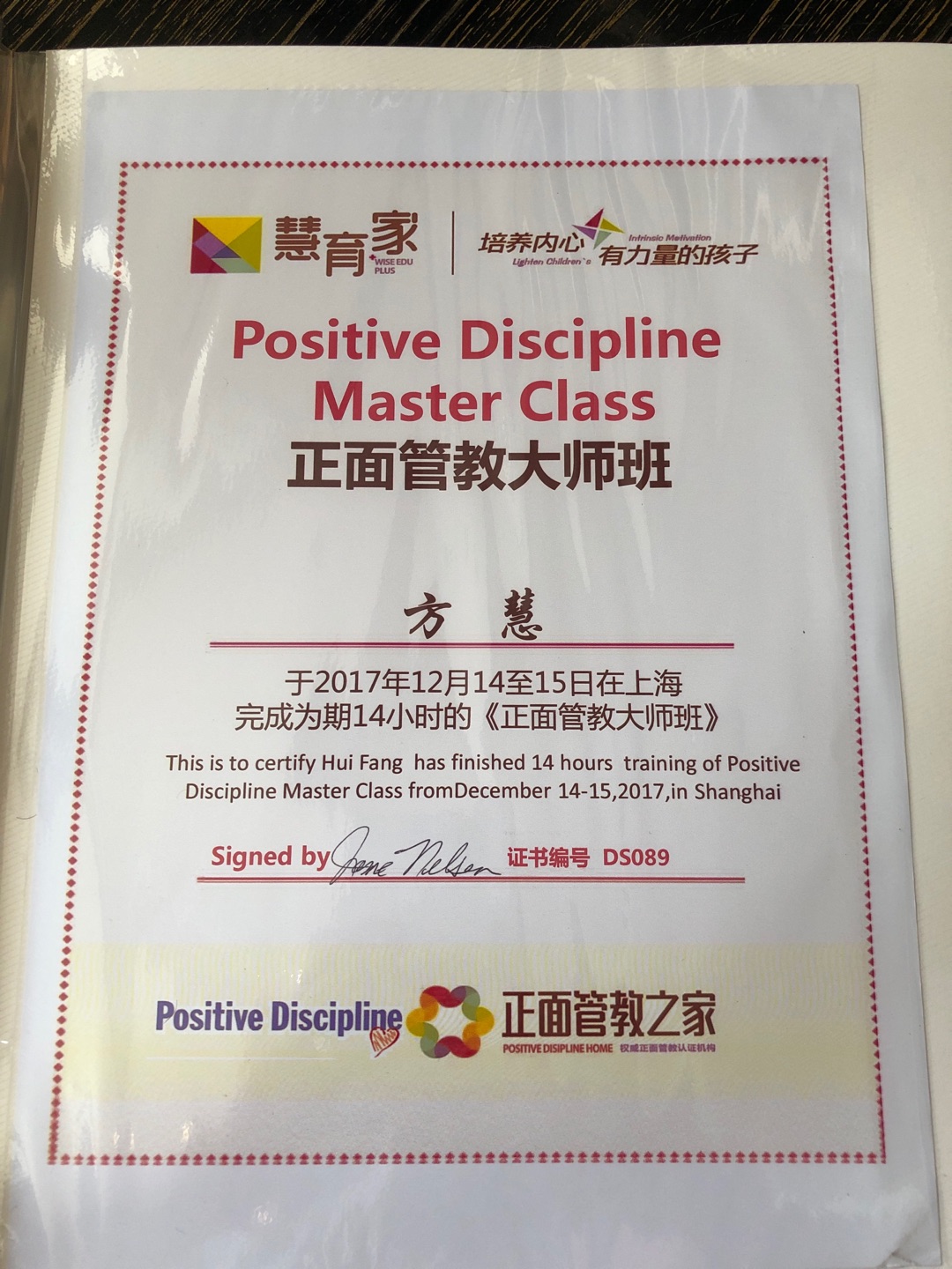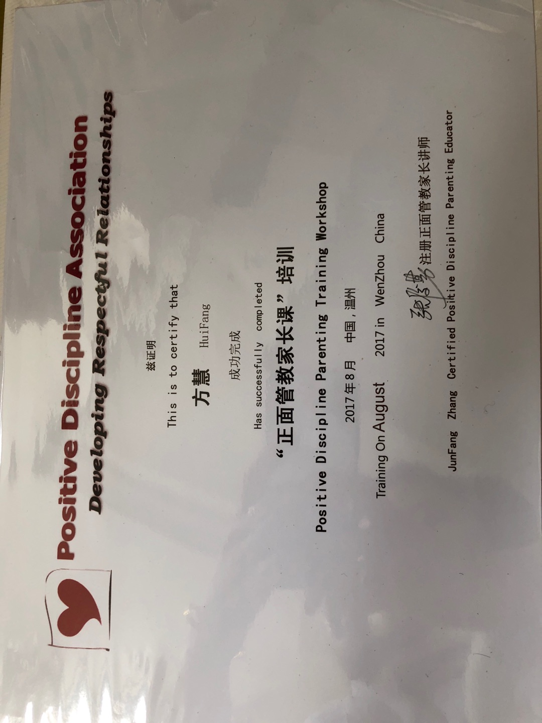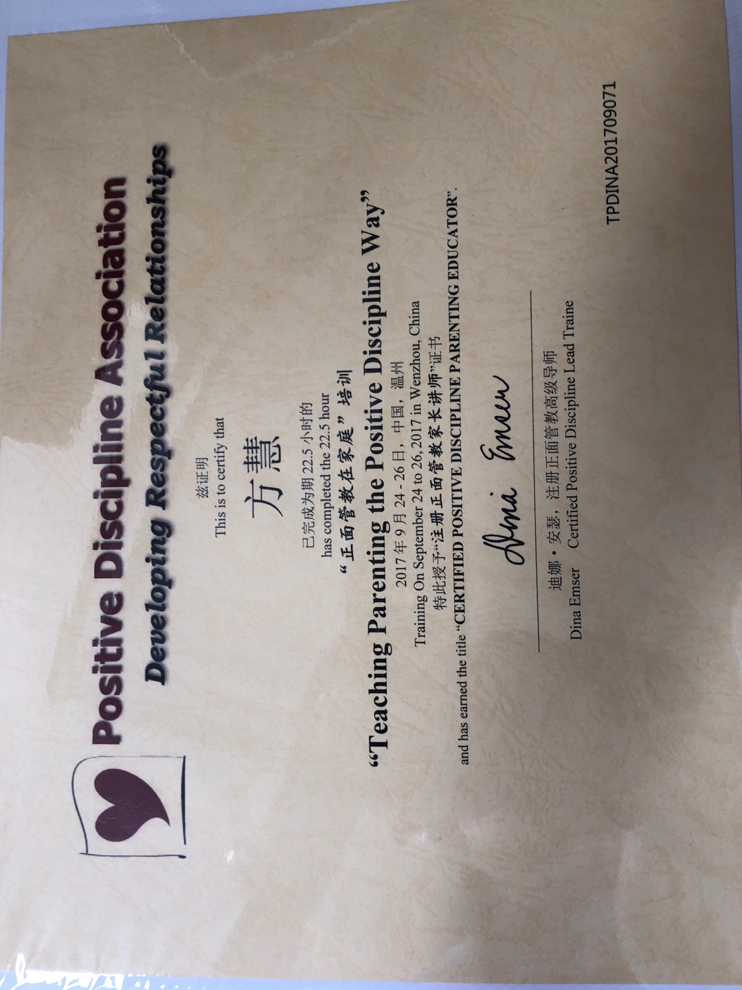 正面管教家长讲师 SEL社会情感技能儿童讲师 国家二级心理咨询师 瑞安市家庭教育协会副会长