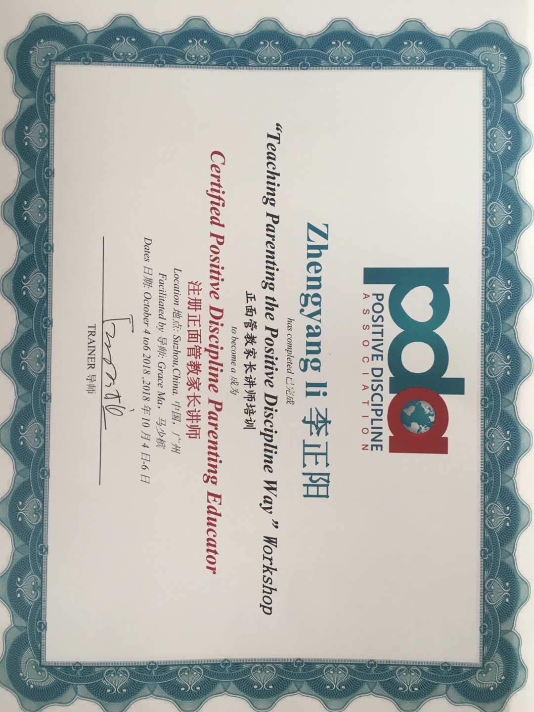 公办市一级幼儿园园长、海南师范大学继续教育学院兼职讲师、先知教育金牌讲师、美国正面管教家长培训讲师、海北骑行者