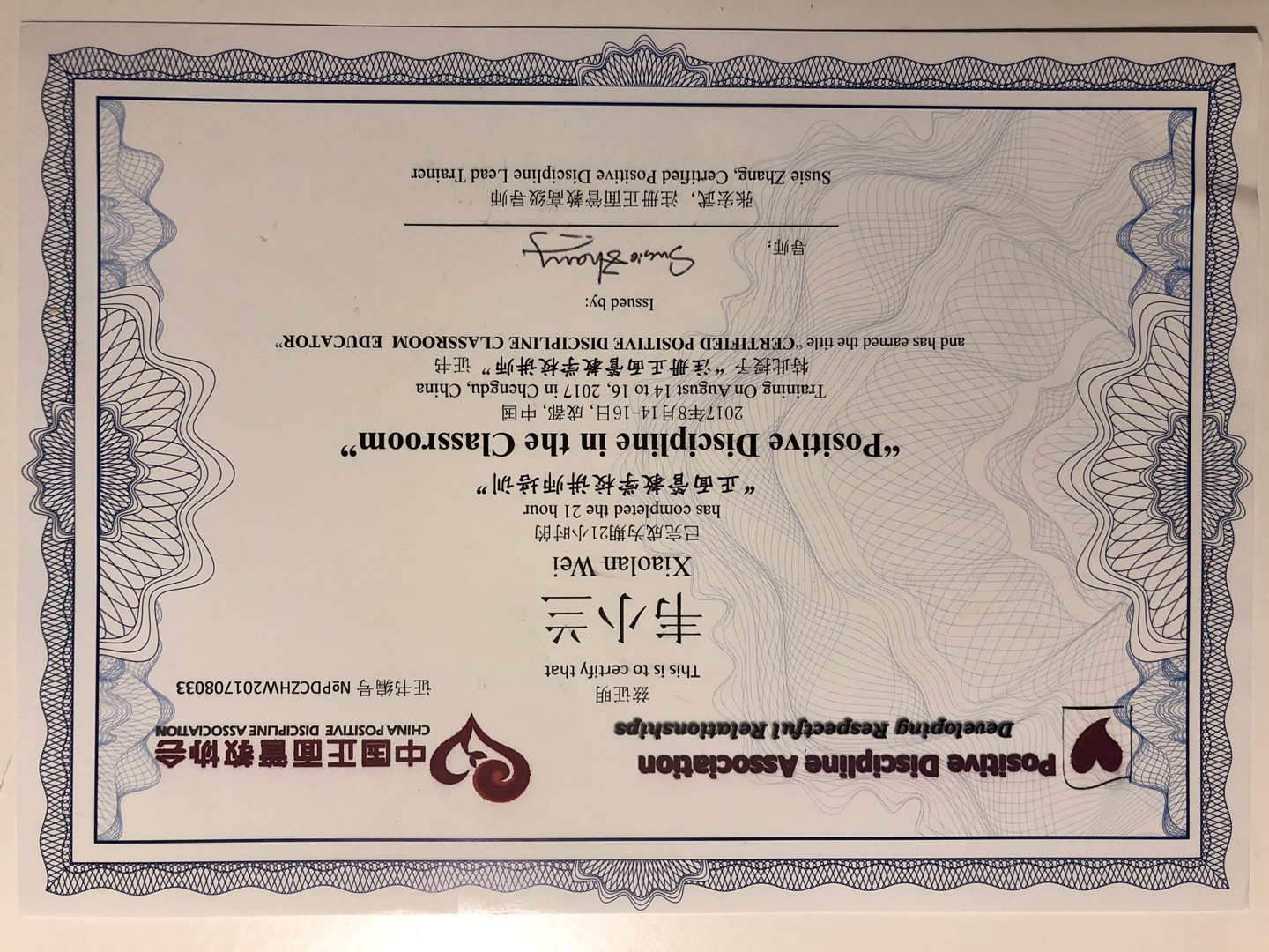 国家二级心理咨询师 萨提亚家庭治疗师 美国正面管教协会认证学校讲师 CPE执业家教师 苏州吴江实小班级公约 校外辅导员 苏州 伊甸园家庭社工 中心主任